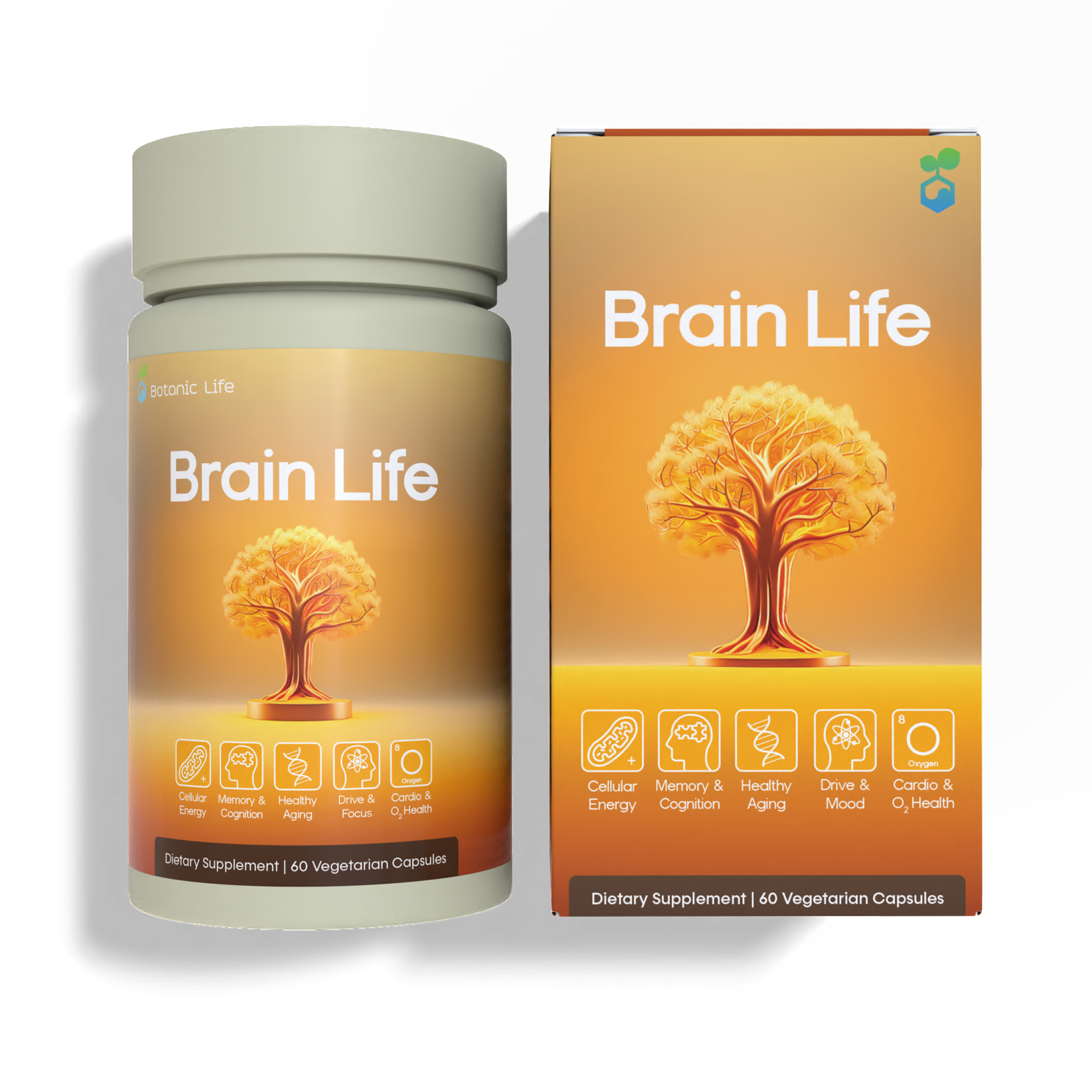 Beta form is the naturally occurring, bioactive form that our cells can recognize/use and is a precursor to NAD+ biosynthesis. NAD+ is an important energy molecule that is depleted in production by half by middle age compared to our youth. Because the amount of NMN obtained from food is likely less than 2mg a day, it may be essential to supply NMN from nondietary sources to sustain proper NAD+ levels. Each Brain Life capsule has the purified, isolated B-NMN, shown in modern science to support age-related deceleration and stressors of the body by improving mitochondrial function to rejuvenate cellular energy, support neuronal function in the brain, and promote metabolic processes. *